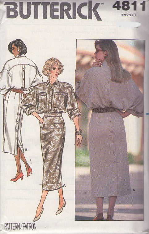 Butterick 4811 Vintage 80's Sewing Pattern Secretary Dress, Dropped Bloused Sleeves, Safari Pockets Dress, Hip Yoke, Back Button Bank Rear Interest Size 8-12
