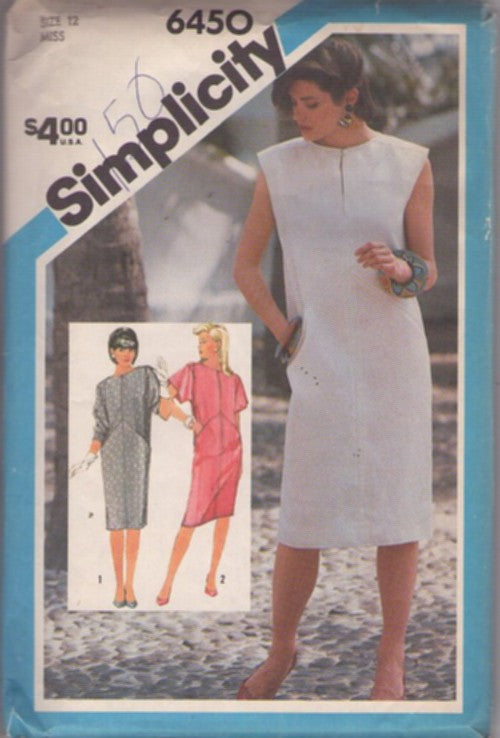 Simplicity 6450 Vintage 80's Sewing Pattern Tube Dress, Grunge Slit Neck, Shaped Front, Tapered Straight Tube Dress 3 Styles Size 12